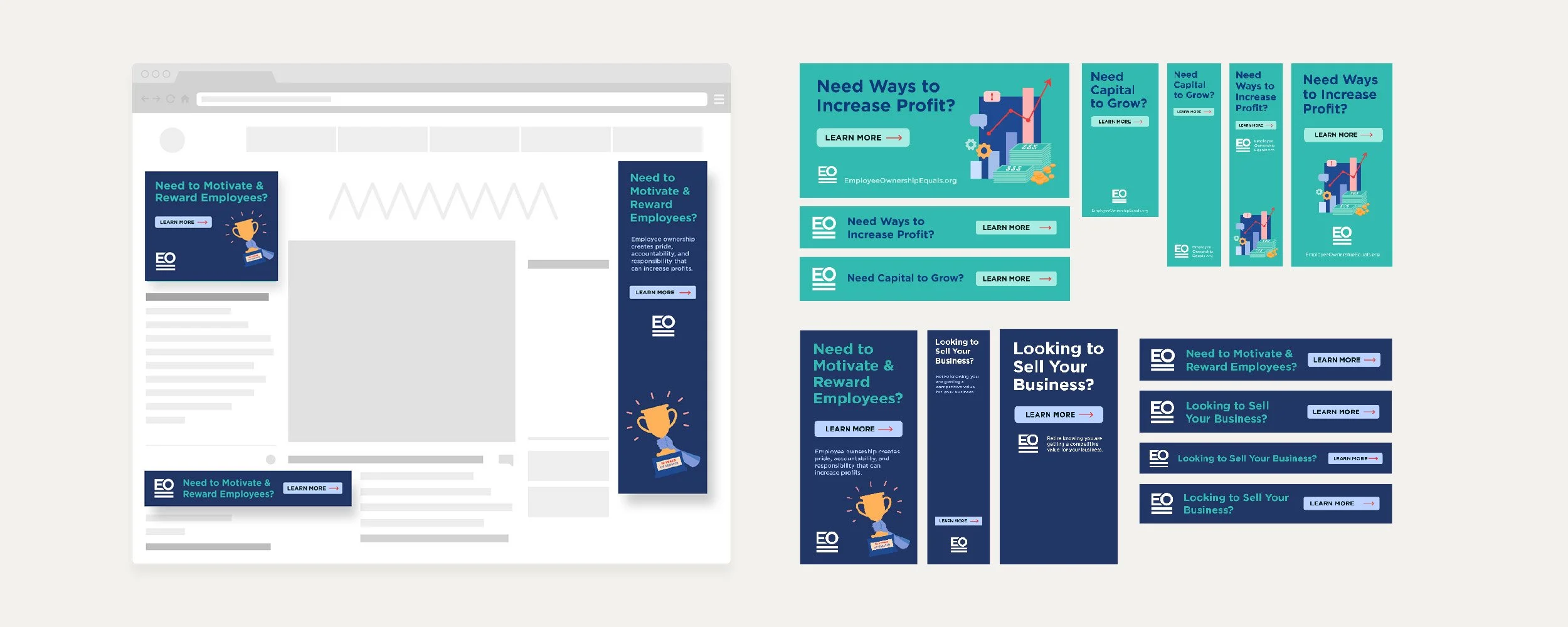 We called the campaign EO Equals to spotlight how employee ownership led directly to the specific benefits small business owners cared about most: